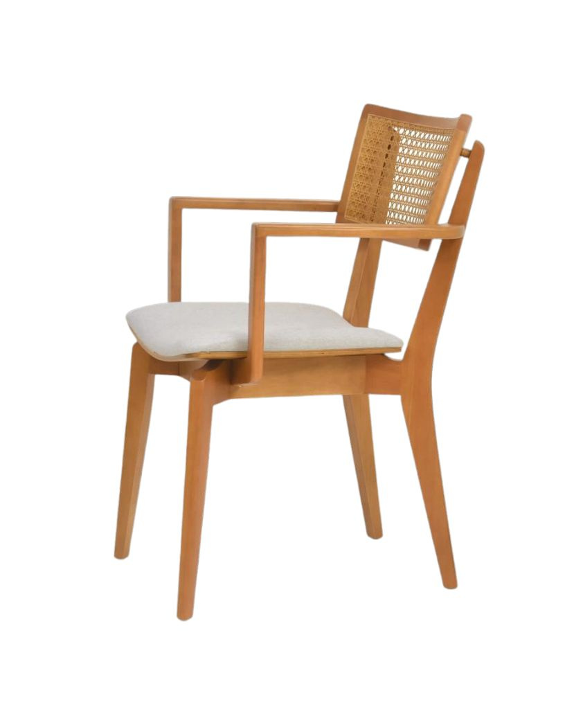 Cód. TOPA02 Cadeira Madeira Topázio com Braços de Apoio Assentos Curvados Estofados e Encosto com Telinhas - Cód: TOPA02